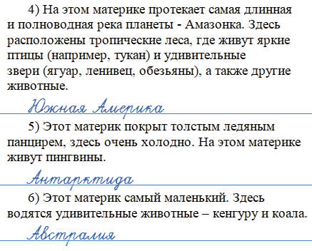 1) Этот материк самый большой. Его делят на две части света – Европу и Азию. На этом материке находится наша Родина – Россия.