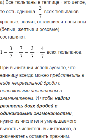 оставшихся тюльпанов - белые, а остальные - желтые и розовые. Какую часть тюльпанов составляют жёлтые и розовые?