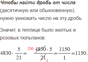 б) Сколько жёлтых и розовых тюльпанов, если всего в теплице 4830 тюльпанов?