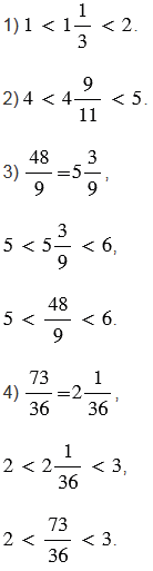 Смешанное число расположено между натуральным числом, которое соответствует его целой части и натуральным числом, которое следует за его целой частью в натуральном ряду.