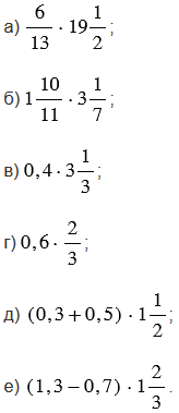 2) чтобы выполнить умножение смешанных чисел, нужно записать эти числа в виде неправильных дробей, а затем воспользоваться правилом умножения дробей. Чтобы преобразовать смешанное число в неправильную дробь, надо целую часть числа умножить на знаменатель дробной части и к полученному произведению прибавить числитель дробной части; эту сумму записать как числитель неправильной дроби, а в ее знаменатель записать знаменатель дробной части смешанного числа;