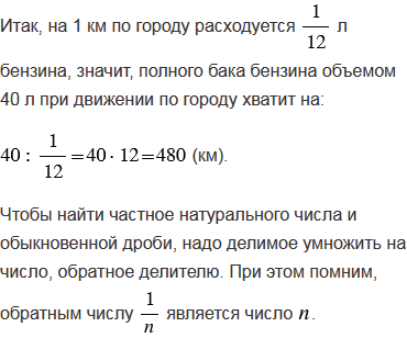 раза больше, чем при пробеге по скоростной трассе. На сколько километров хватит полного бака бензина объемом 40 л при движении по городу, если при движении по скоростной трассе на 400 км пути расходуется