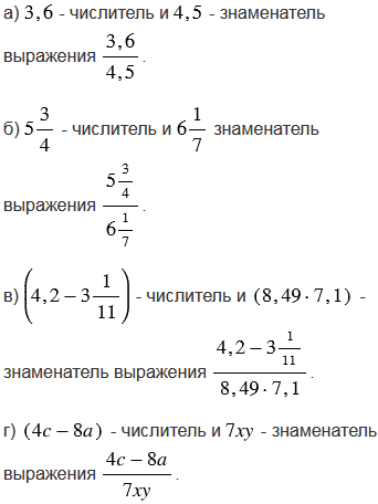 Назовите числитель и знаменатель дробного выражения: