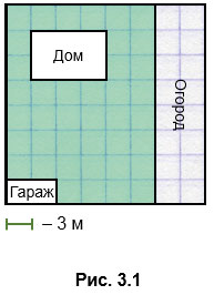 1) 3 • 3 = 9 (м2) - площадь одной клетки.