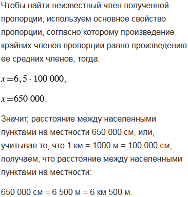 Расстояние между населенными пунктами на карте равно 6,5 см. Найдите расстояние между этими пунктами на местности, если масштаб карты