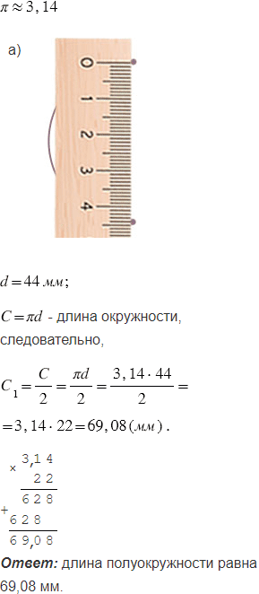 а) На рисунке 3.49 изображена половина окружности. Сделайте необходимые измерения и найдите её длину.