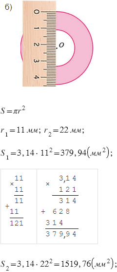 б) Измерьте радиус каждой окружности и вычислите площадь кольца (рис. 3.50).
