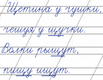 Составим скороговорки. Щетина у чушки, чешуя у щучки. Волки рыщут, пищу ищут.