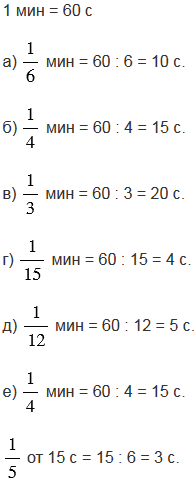 показывает, что 1 мин = 60 с нужно разделить на 6 долей (равных частей), получим, что одна такая доля, то есть