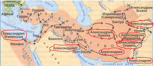 1. Поход Александра Македонского на восток начался в 334 г. до н. э., а завершился в 324 г. до н. э.