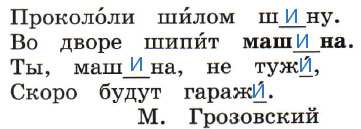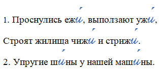 Ежи, ужи, чижи, стрижи, шины, машины - жи, ши пиши с буквой и.