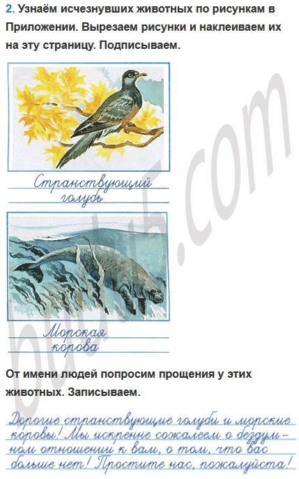 2. Узнай исчезнувших животных по рисункам в Приложении. Вырежи рисунки и наклей их на эту страницу. Подпиши.