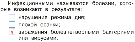 2. Серёжа хочет знать, какие болезни называются инфекционными. Выбери правильный ответ и отметь его галочкой.