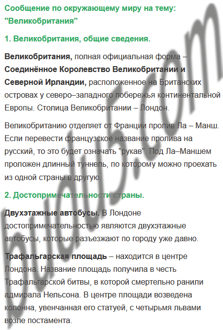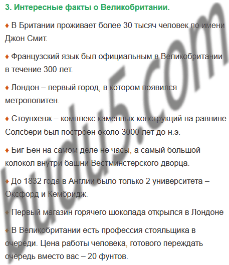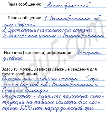 9. Подготовь сообщение о Франции или Великобритании. Можешь воспользоваться информацией из учебника (с. 140), дополнительной литературой, Интернетом. Лучше выбрать страну, где тебе доводилось бывать. Тогда ты сможешь дополнить собранную информацию своими впечатлениями.