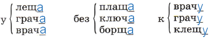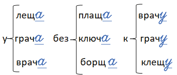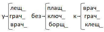 Врач - доктор, плащ - одежда, ключ - предмет, чтобы открывать двери, борщ - суп, клещ - насекомое.