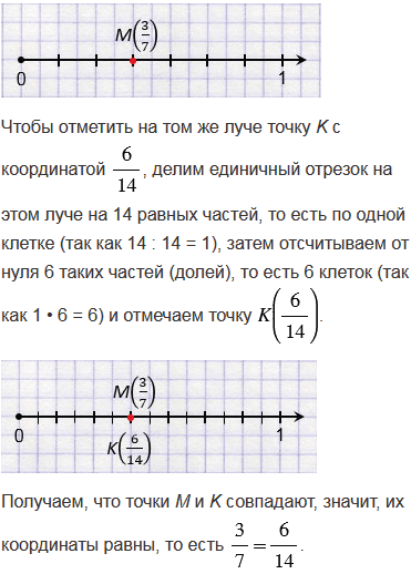 На координатном луче с единичным отрезком, равным 14 клеткам, отметьте точки