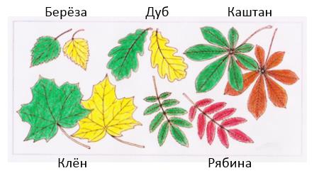 Расскажите одноклассникам, листья каких деревьев вы нарисовали. Узнайте, какие листья нарисовали они.