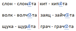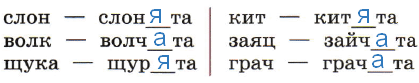 слон - слон_та  кит - кит_та