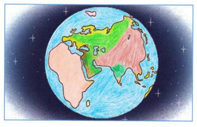 2. С помощью глобуса раскрась на рисунке нашу планету.