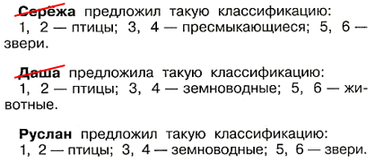 7. Определяем, кто из ребят правильно разделил на группы животных, изображённых на карточках.