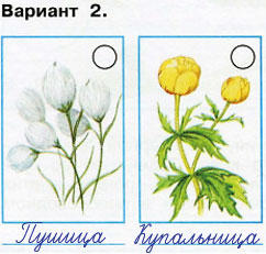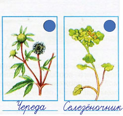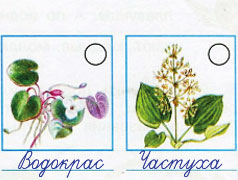 3. С помощью атласа – определителя "От земли до неба" узнаём названия растений пресного водоёма и влажных мест, подписываем. Отмечаем растения, которые доводилось встречать в природе (закрашиваем кружок).