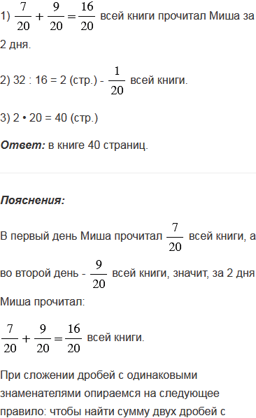 всей книги. Сколько страниц в книге, если за 2 дня Миша прочитал 32 страницы?