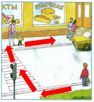 4. Показываем стрелками на рисунках, как нужно идти Серёже, чтобы пройти в булочную, а Наде – в аптеку.