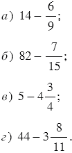При вычитании из натурального числа дроби или смешанного числа поступают таким же образом.