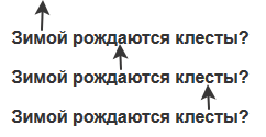 Эти предложения различны по смыслу, стрелкой показано слово, которое требует ответа-подтверждения. В каждом предложении автора интересует разная информация о птицах. В первом предложении важно время года, в которое рождаются клесты - зима. Во втором предложении важно то, что именно происходит с клестами зимой - они рождаются. А в третьем предложении задаётся вопрос о том, кто именно рождается зимой.