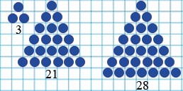 Составьте три треугольных и три квадратных числа. Найдите закономерность составления и треугольных и квадратных чисел.