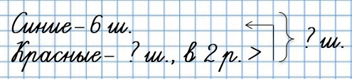 2. На день рождения сестры брат купил 6 синих шаров, а красных - в 2 раза больше. Сколько всего синих и красных шаров купил брат?