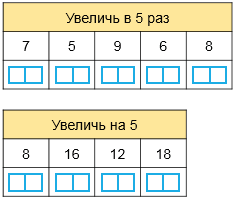 1) Разность чисел 78 и 70 увеличить в 5 раз.