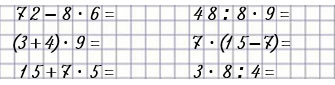 Вспомни порядок выполнения действий при нахождении значения числовых выражений со скобками и без них.