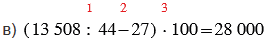 2. Если в выражении нет скобок, то сначала выполняют действия второй ступени, потом - действия первой ступени.