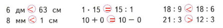 21 : 3 > 12 : 3, потому что при равных делителях (3) в левой части делимое больше, значит, частное больше