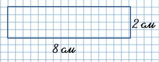 9. Начерти прямоугольник, площадь которого равна 16 см2, а длина одной стороны - 8 см. Найди его периметр.