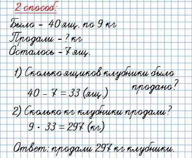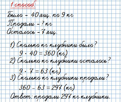 1) 40 - 7 = 33 (ящ.) - клубники продали