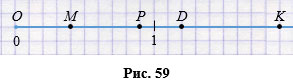 Определите координаты Р, K, М, D на рисунке 59. Найдите в единичных отрезках длину: а) ОМ; б) РK; в) DО; г) МD.