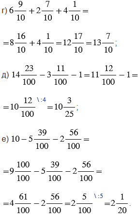3) чтобы выполнить сложение смешанных чисел, нужно: привести дробные части этих чисел к наименьшему общему знаменателю; отдельно выполнить сложение целых частей и отдельно дробных частей. Если при сложении дробных частей получилась неправильная дробь, выделить целую часть из этой дроби и прибавить ее к полученной целой части;