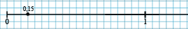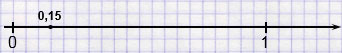 1 см будет соответствовать 0,1 единичного отрезка, если мы разделим 1 см на 10 равных частей, то получим 0,01 единичного отрезка, при этом 0,1 см = 1 мм. Чтобы отметить точку с координатой 0,15 разложим данное число на разрядные слагаемые 0,15=0,1+0,05. То есть чтобы отметить это число надо от нулевого деления отложить 1 см и 5 мм: