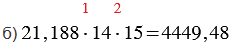 Порядок выполнения действий выбираем согласно следующему правилу: если в выражении нет скобок и оно содержит только умножение, то действия выполняют по порядку слева направо.
