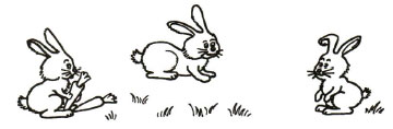 Сколько кроликов смотрит налево? Один.