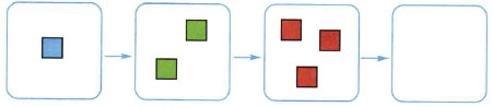 По какому правилу выполнен переход от одного рисунка к следующему за ним? Нарисуй по этому правилу фигуры в последней рамке.