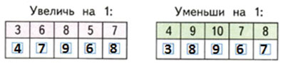 Рассмотри рисунки. Рамку с равенством для перехода от рисунка слева к рисунку справа закрась жёлтым цветом, а от рисунка справа к рисунку слева зелёным.