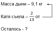 показывает, что массу дыни нужно разделить на 13 равных частей, а числитель - то, что нужно взять 2 такие части, следовательно, Катя съела: