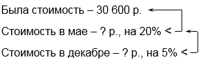 Холодильник стоил 30 600 р. В мае цена холодильника была снижена на 20%, а в декабре - еще на 5%. Как стала стоимость холодильника в декабре?