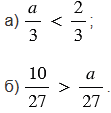 Из двух дробей с одинаковыми знаменателями больше та, у которой числитель больше, и меньше та, у которой числитель меньше.