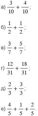 в) чтобы сложить дроби с одинаковыми знаменателями, нужно сложить их числители, а знаменатель оставить тот же?