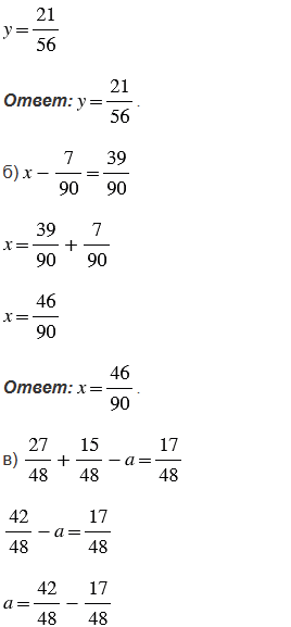 б) чтобы из одной дроби вычесть другую дробь с тем же знаменателем, нужно из числителя уменьшаемого вычесть числитель вычитаемого, а знаменатель оставить тот же;