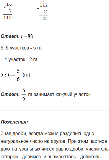 5. Поле занимает площадь 5 га. Оно разбито на 6 равных участков. Сколько гектаров занимает каждый участок?